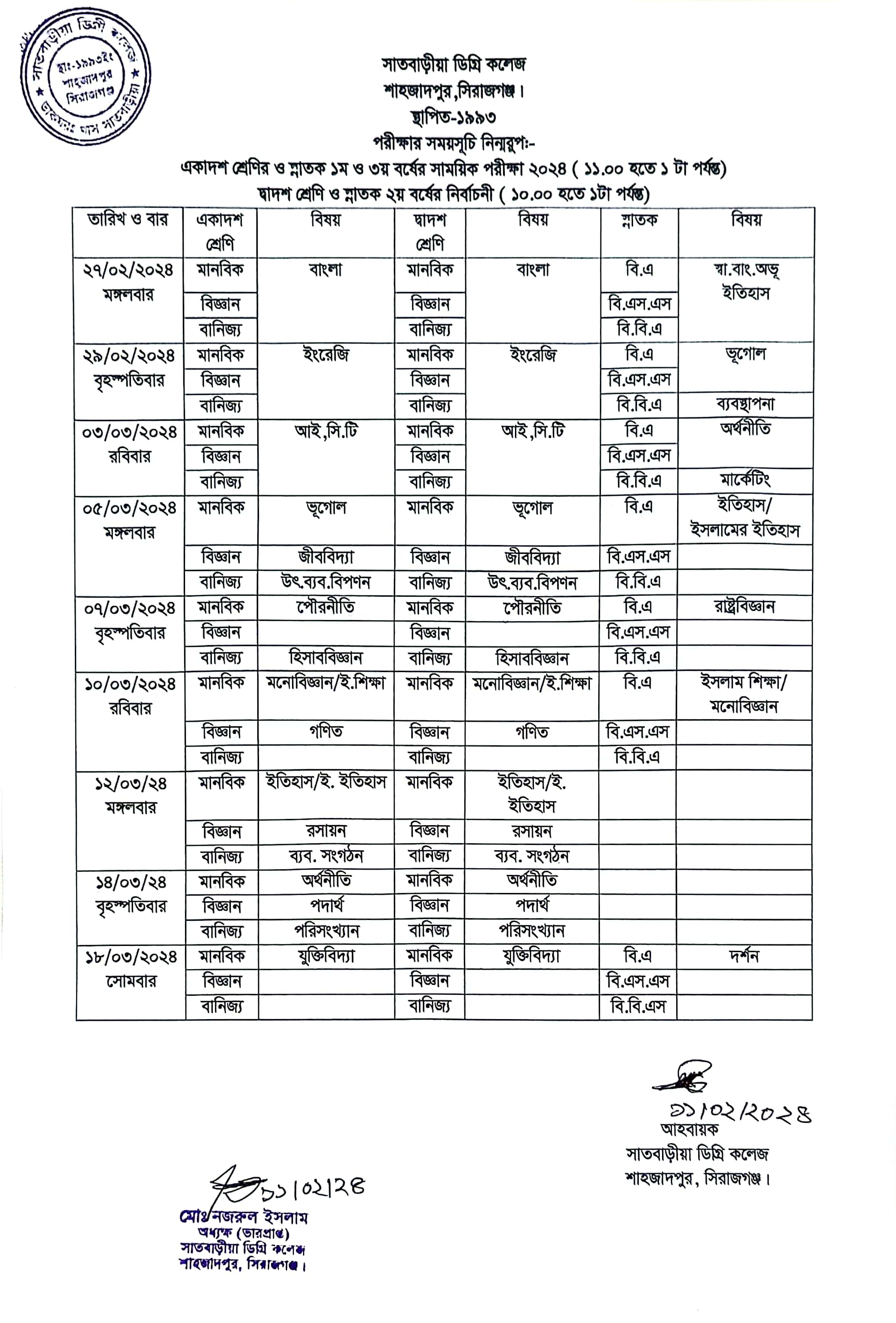 সাতবাড়ীয়া ডিগ্রি কলেজ শাহজাদপুর , সিরাজগঞ্জ।