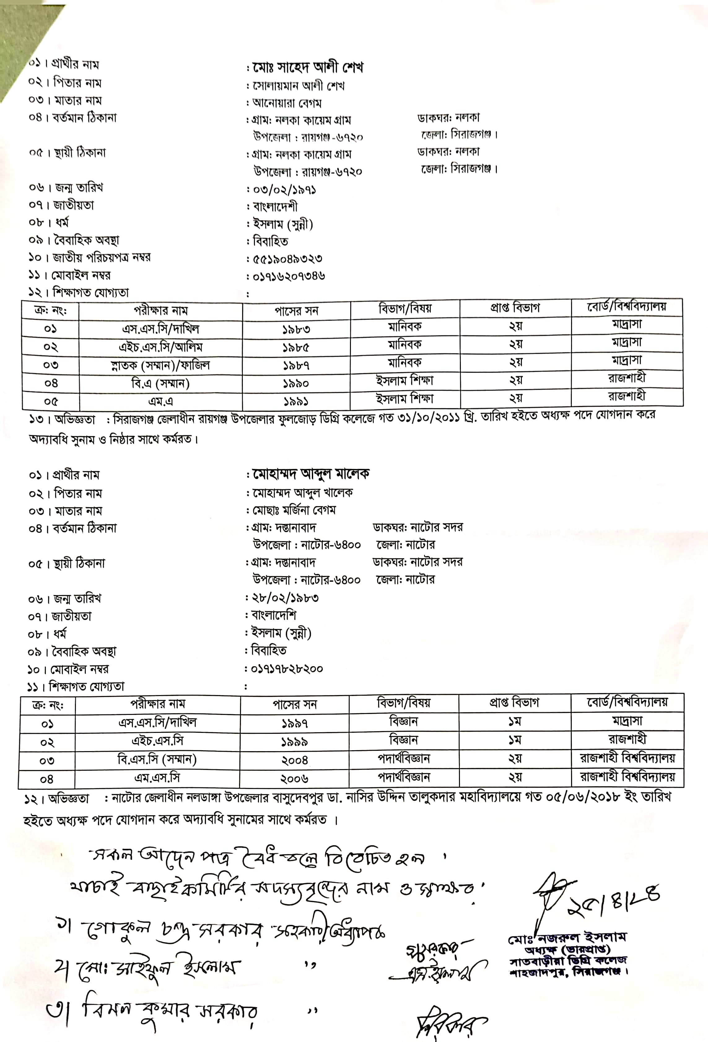 অধ্যক্ষ শূন্য পদে যাচাইকৃত বৈধ আবেদনকারীদের তথ্য
