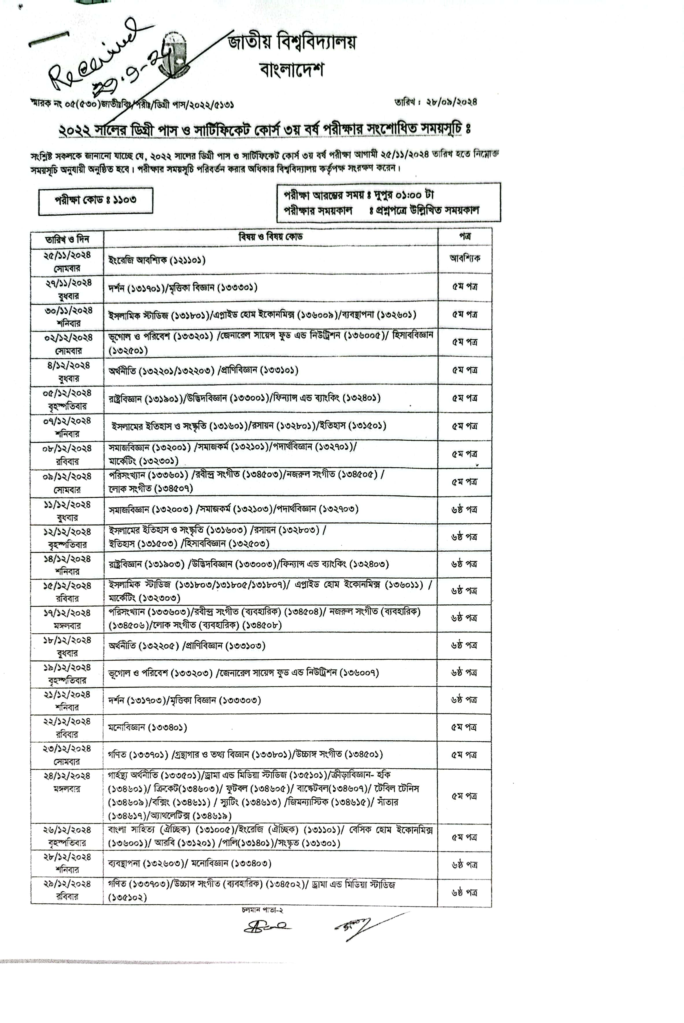 - ২০২২ সালের ডিগ্রি পাস ও সার্টিফিকেট কোর্স ৩য় বর্ষ পরীক্ষার সংশোধিত সময় সূচি :