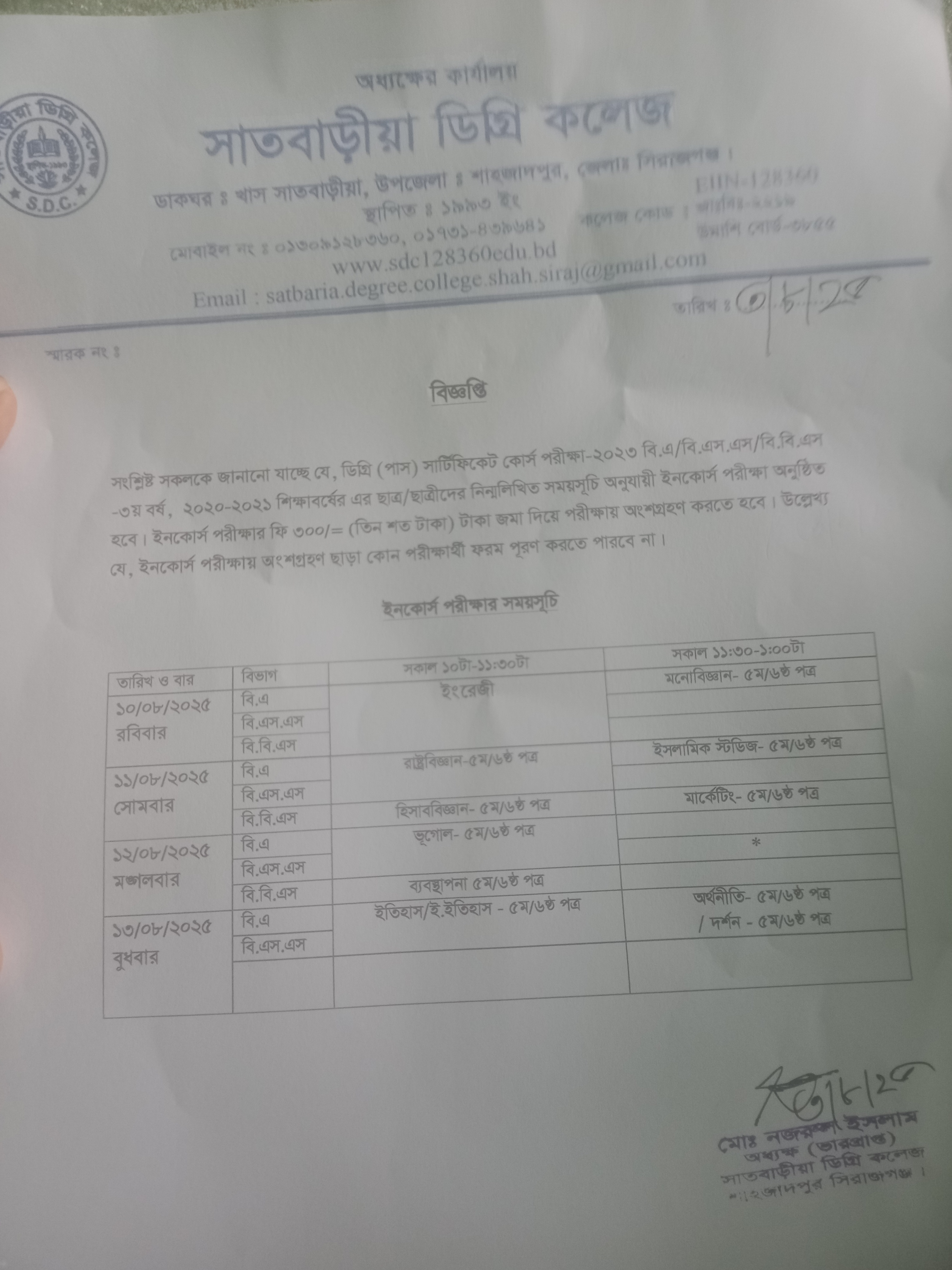 সাতবাড়িয়া ডিগ্রী কলেজ, শাহজাদপুর সিরাজগঞ্জ।