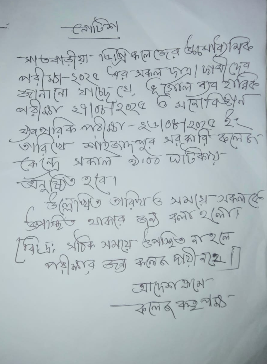 উচ্চ মাধ্যমিক পরীক্ষা 2025 এর ব্যবহারিক পরীক্ষার নোটিশ