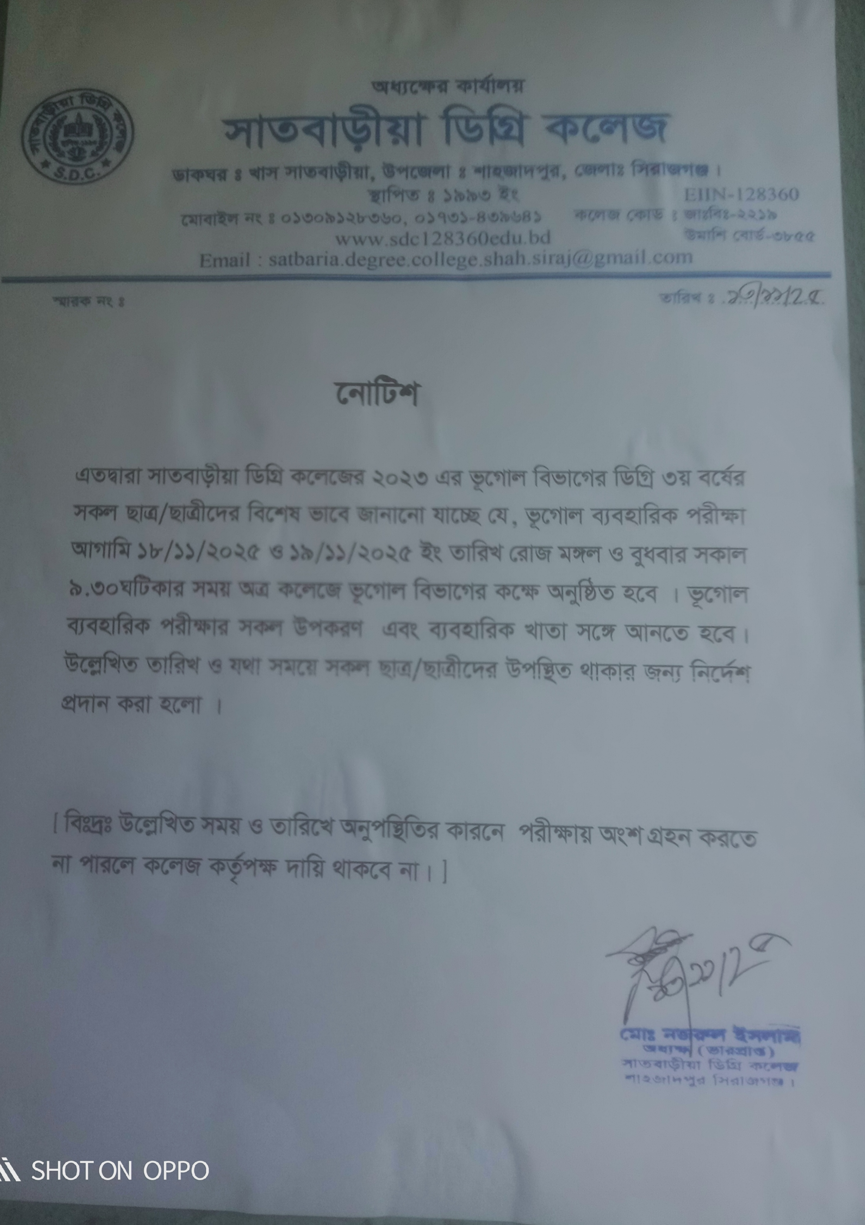 ডিগ্রী পাস পরীক্ষা ২০২৩ এর ভূগোল ব্যবহারিক এর সময়সূচী